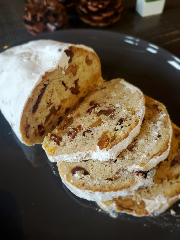 ラム酒に漬け込んだドライフルーツが たっぷり詰まった、食べ応えのあるドイツのお菓子、シュトーレン。 12月初旬からクリスマスまで少しずつ食べ進めていくお菓子です。 今年はいつものドライフルーツにりんごをプラスして作りまし
